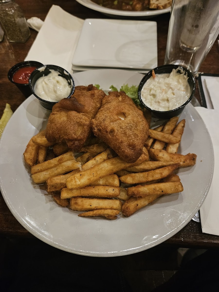 10/10 would recommend! We sat on the covered patio and had a great time. I ordered the black and blue steak special, served over mashed potatoes with a rich blue cheese cream sauce, while my brother enjoyed the sirloin steak. Our parents enjoyed the fish & chips and needles to say, the dishes were excellent! Our server, Ali, was absolutely amazing, attentive, charismatic, and truly went above and beyond to make sure our experience was perfect. She defines top-tier service. If you haven’t had the chance, do yourself a favor and check out this awesome restaurant!
